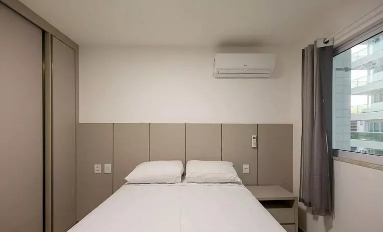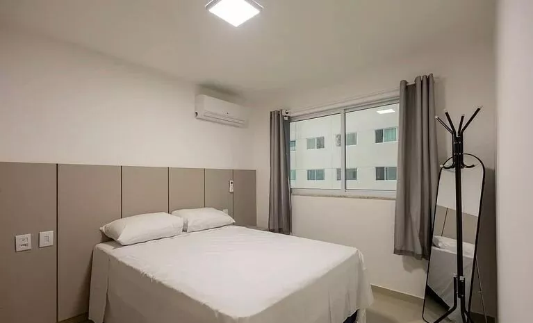🛏️ Quarto: cama, guarda-roupa, cômoda, ar-condicionado para seu descanso.